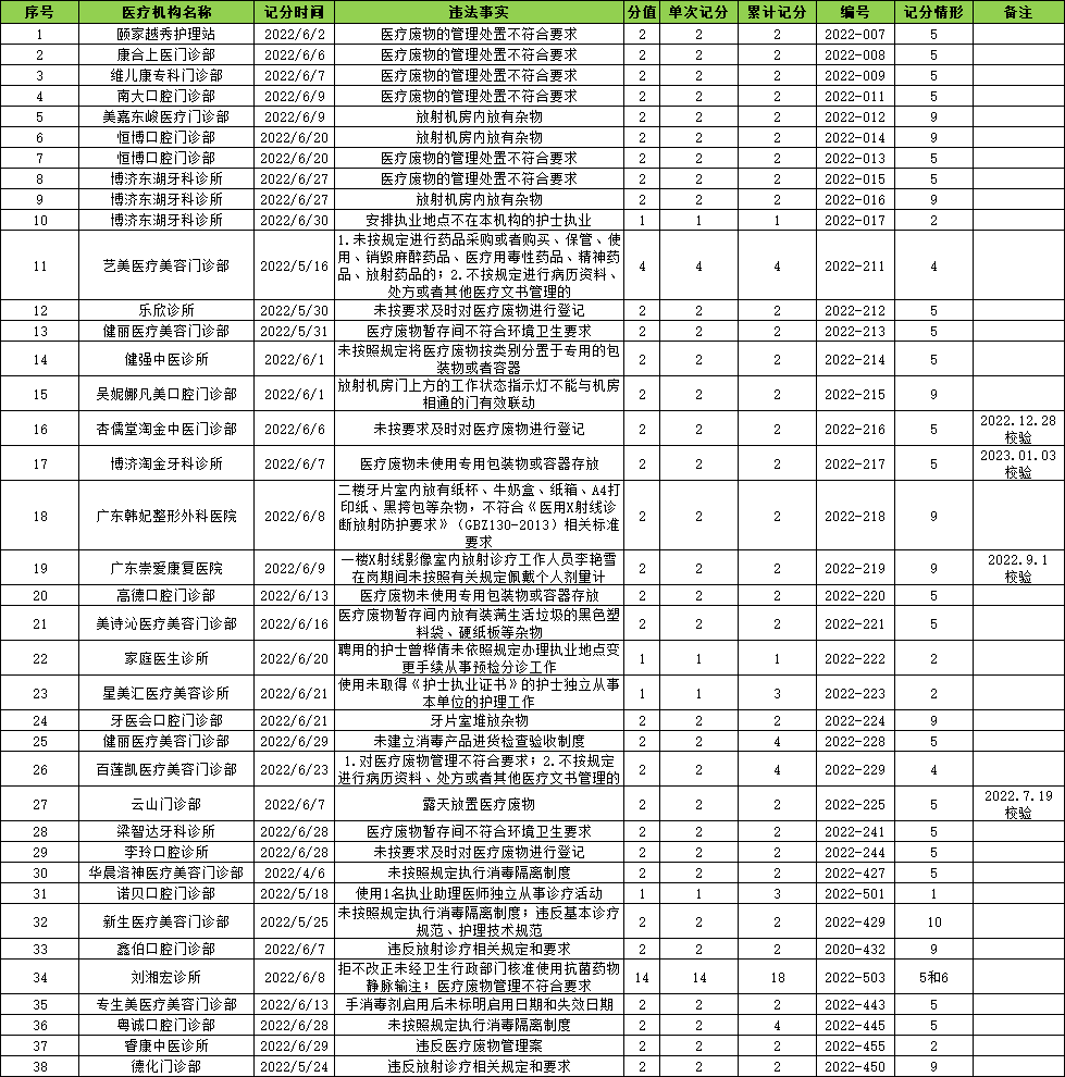 2022年第二季度注册送彩金的平台 医疗机构不良执业行为记分表