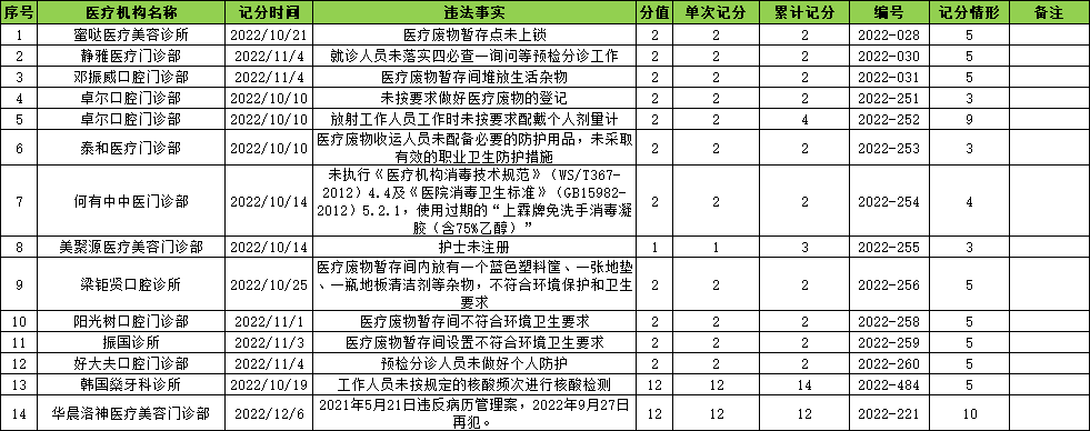 2022年第四季度注册送彩金的平台 医疗机构不良执业行为记分表