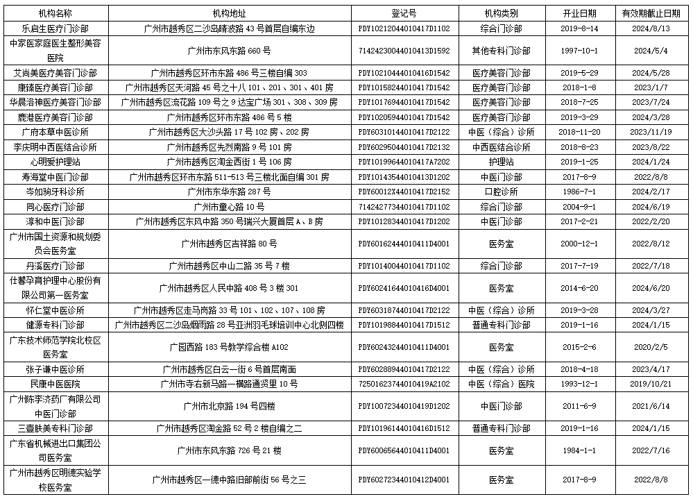 根据《中华人民共和国行政许可法》《医疗机构管理条例》《医疗机构管理条例实施细则》《医疗机构校验管理办法(试行)》及《卫生行政许可管理办法》等有关规定,下列医疗机构的《医疗机构执业许可证》有效期已届满,且均未按照规定主动申请延续,经审查,依法予以注销。