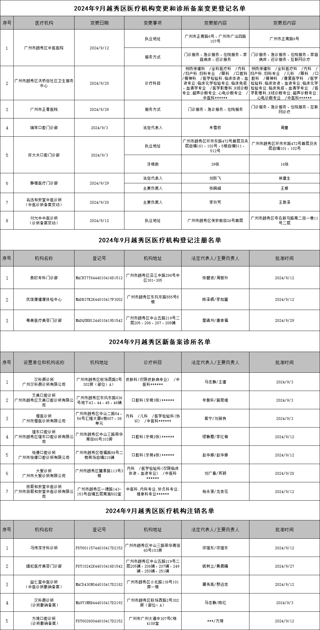 2024年9月份医疗机构有关信息网上公示名单
